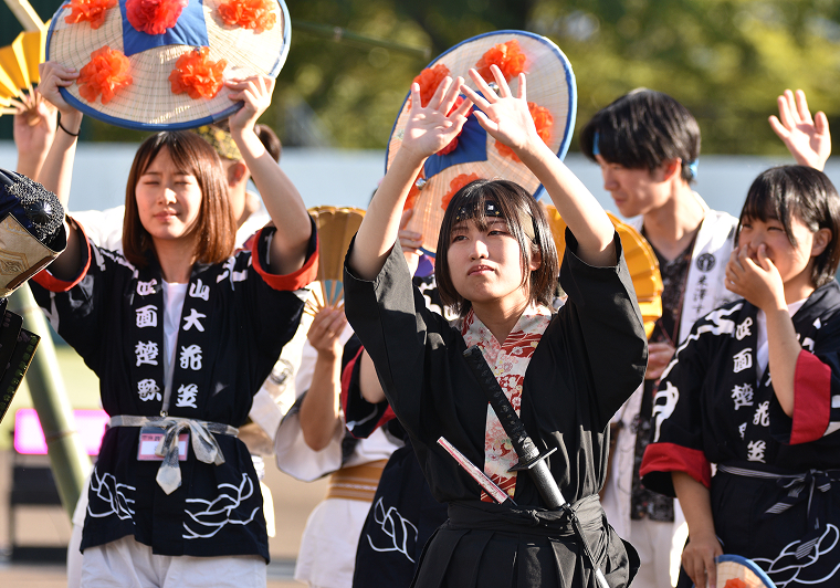 大義を胸に戦う戦国合戦を、花火と演舞で迫力満点に描きます。